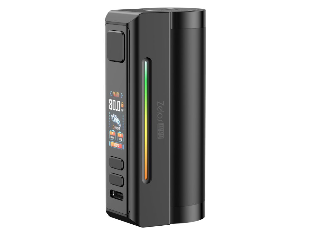 Mit seiner integrierten 2600-mAh-Akkuzelle bietet dir der Zelos M80 langanhaltende Power. Die variable Ausgangsleistung von 5 bis 80 Watt ermöglicht dir individuelle Einstellungen, während das 0,96-Zoll-TFT-Farbdisplay alle wichtigen Daten übersichtlich anzeigt. Dank des USB-C-Anschlusses lädt der Akku schnell und sicher – perfekt für deinen aktiven Lifestyle.